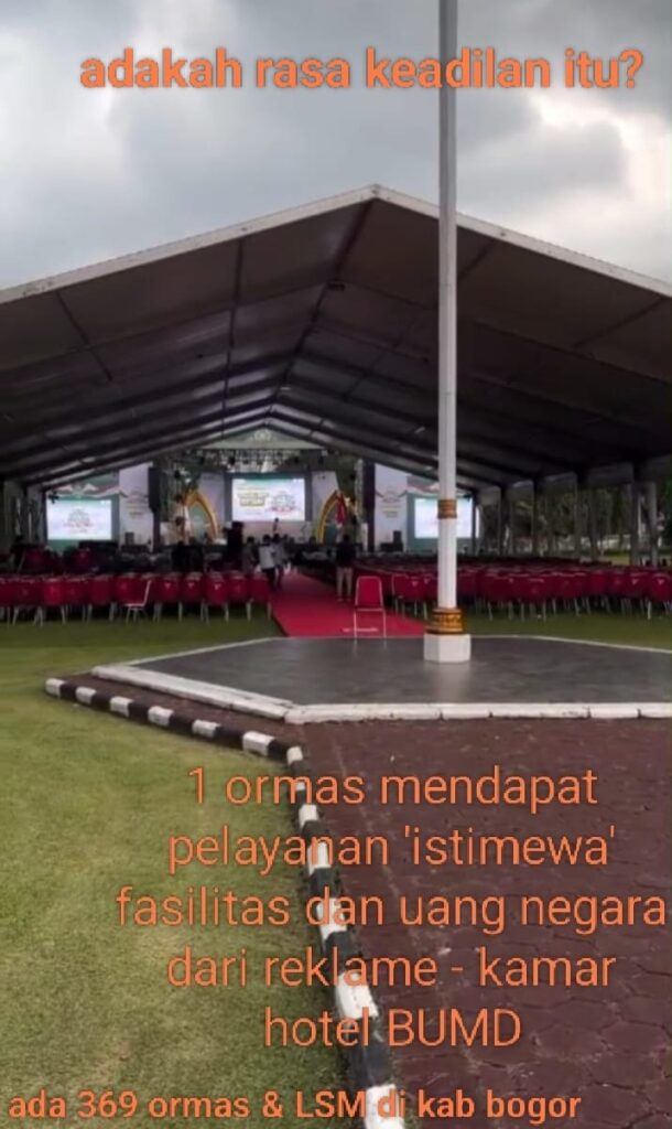Bogor, SUARABUANA.com Isu dugaan perlakuan istimewa terhadap sebuah organisasi masyarakat di Kabupaten Bogor menjadi pembicaraan hangat publik. Organisasi non-pemerintah tersebut disebut kerap memakai sejumlah fasilitas milik pemerintah daerah tanpa prosedur yang jelas, memunculkan pertanyaan terkait potensi konflik kepentingan karena ketuanya merupakan anggota DPRD Kabupaten Bogor yang masih aktif.