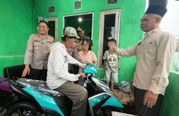 Dalam kunjungannya itu, Abdul Waras memberikan bantuan modal usaha dan menyerahkan satu unit sepeda motor buat Sudrajat.
