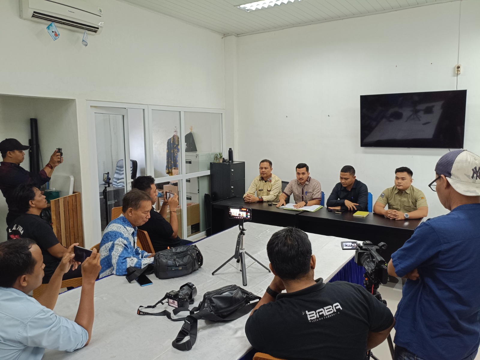 Konferensi pers dipimpin Plt. Kadis Kominfostan Kab. Deli Serdang, Anwar S Siregar SE, M.Si, didampingi Kabid Mutasi dan Promosi BKPSDM, Ahmad Junaidi NST, dan PLH Kabid Pengembangan Kompetensi Aparatur, Agung Tritantyo.