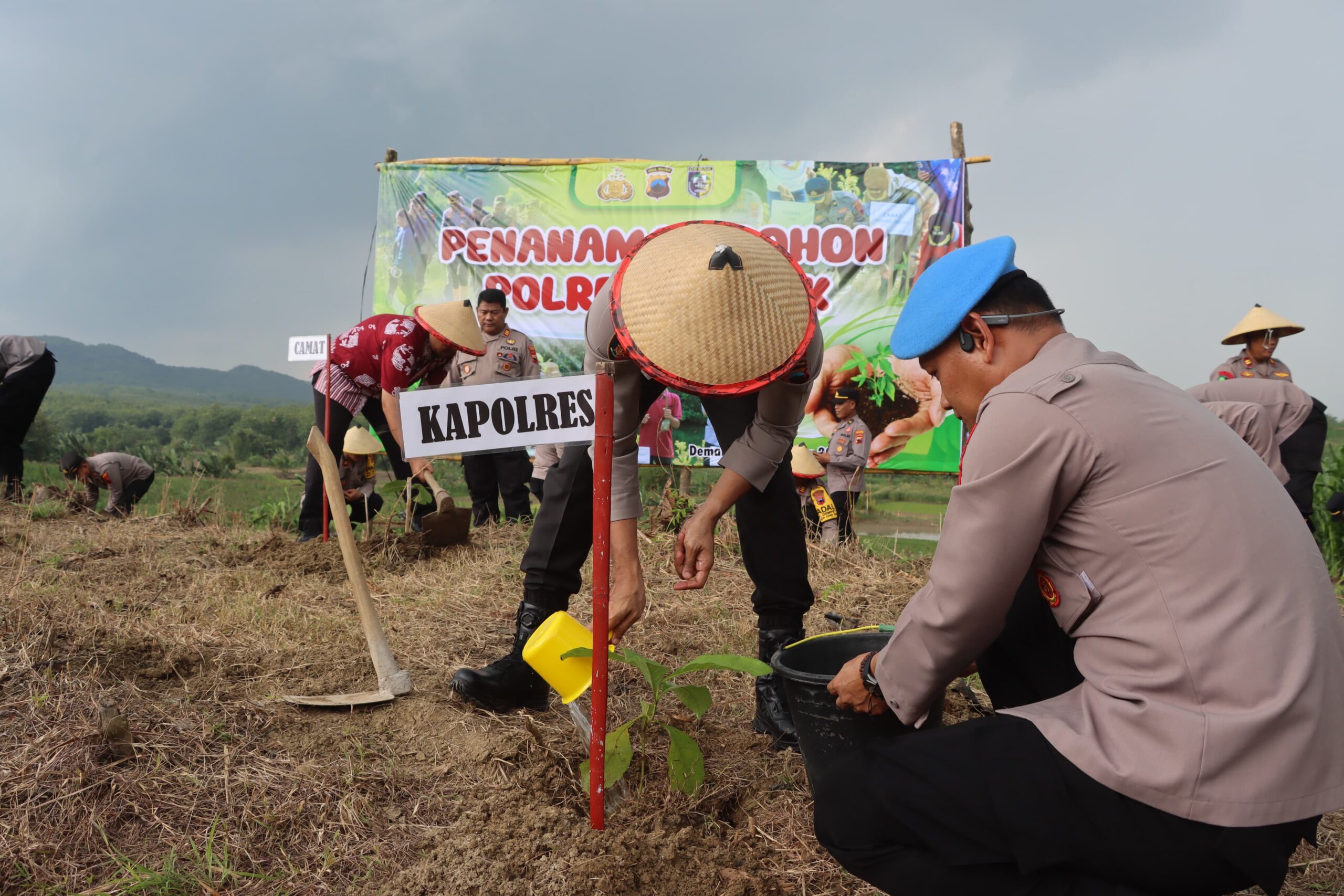 Kegiatan ini dipimpin langsung oleh Kapolres Demak AKBP Ari Cahya Nugraha dan melibatkan jajaran Polres Demak bersama perwakilan Perhutani KPH Semarang, Asper Jembolo Utara, unsur Muspika Karangawen, Pemerintah Desa Wonosekar, serta warga setempat.