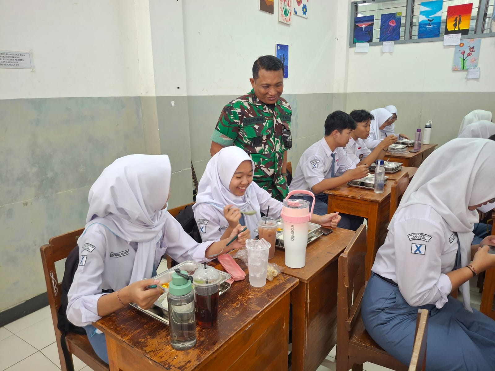 Surakarta, SUARABUANA.com Danramil 03 Serengan Kodim 0735 Surakarta Kapten Cba Tri Rusman Prasetyo, S.Sos bersama Kapolsek AKBP Widodo SH dan Camat Maretha Dinar Cahyono M.M. melaksanakan Lounching Program SPPG-MBG Penyaluran Makanan Bergizi Gratis di Jalan Tejomoyo Nomer 35 Kelurahan Danukusuman Kecamatan Serengan Kota Surakarta dan SMA Nusantara Surakarta, (10/11/2025)