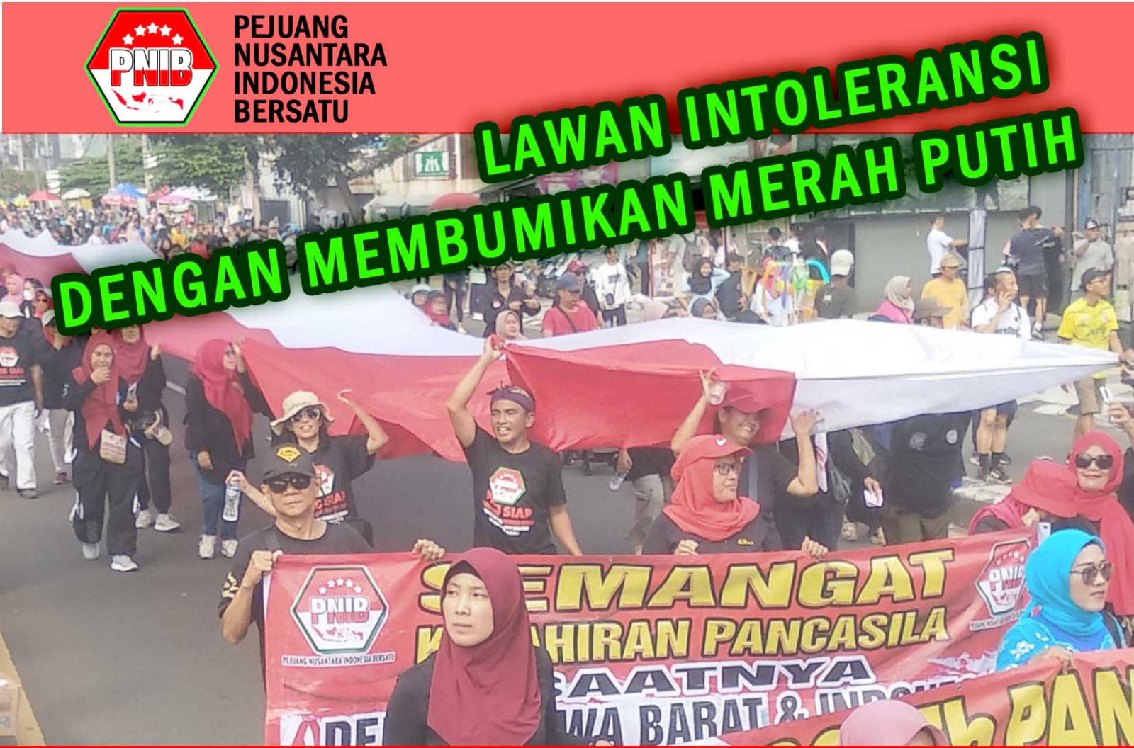 Ormas kebhinekaan lintas agama, budaya dan tradisi, Pejuang Nusantara Indonesia Bersatu (PNIB) menjadi satu-satunya ormas yang aktif menggelar kirab merah putih di berbagai daerah. Aksi solidaritas kebangsaan tersebut dilakukan dalam rangka menangkal fenomena intoleransi, khilafah radikalisme Terorisme dan narkoba yang masih terjadi di tengah pluralisme masyarakat.