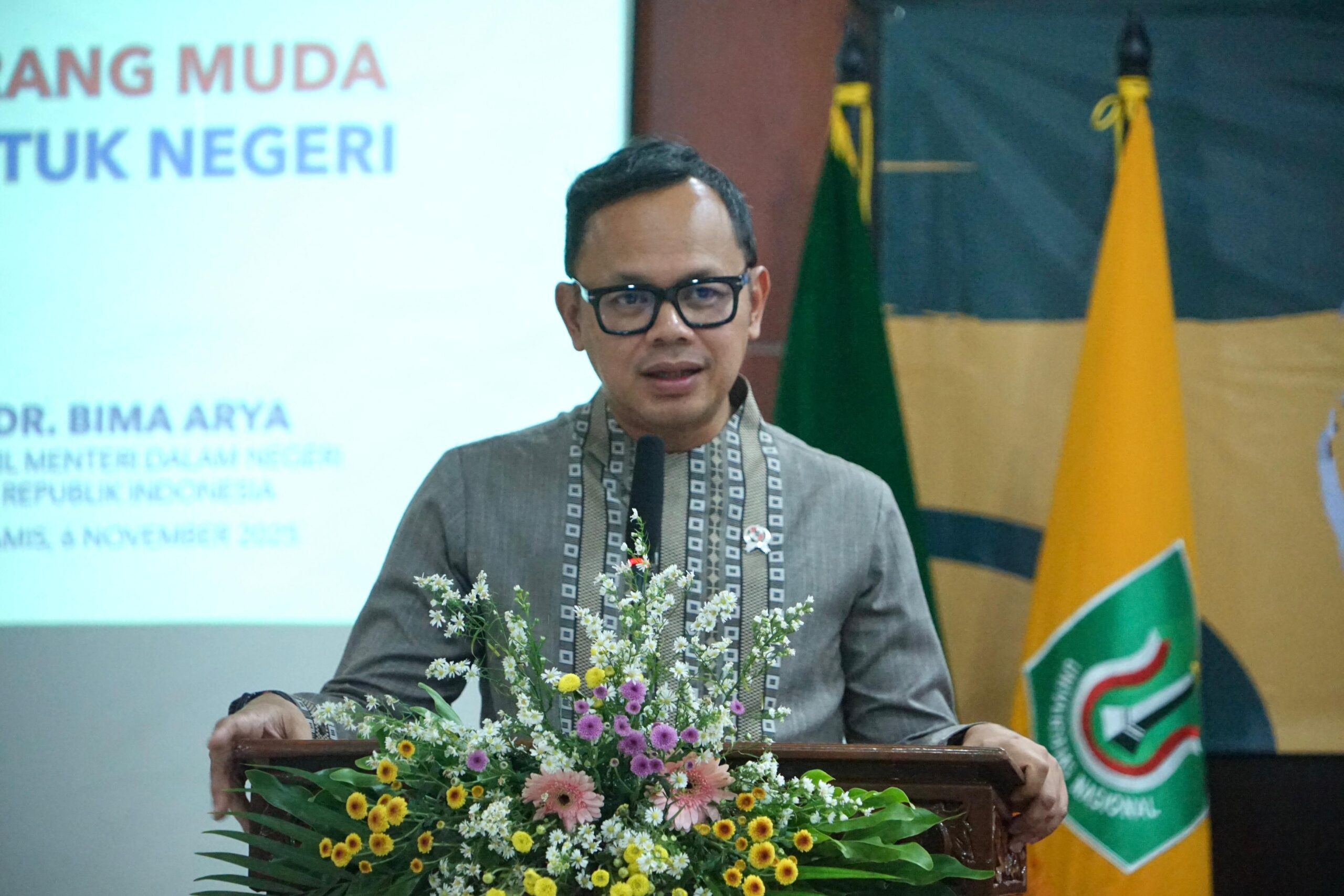Setelah itu, Wakil Menteri Dalam Negeri, Dr. Bima Arya Sugiarto, turut memberikan motivasi inspiratif kepada para lulusan. Ia menekankan pentingnya visi, keberanian, dan keikhlasan dalam menjalani kehidupan.