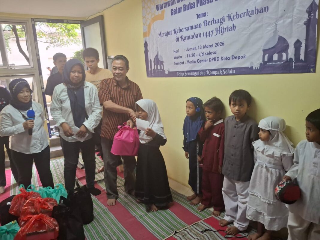 DEPOK, SUARABUANA.com – Dipenghujung Ramadan 1447, gabungan organisasi dan komunitas wartawan kota Depok menggelar buka puasa bersama dan aksi sosial santunan yatim piatu di ruangan media center DPRD kota Depok, Jumat (13/3/2026).