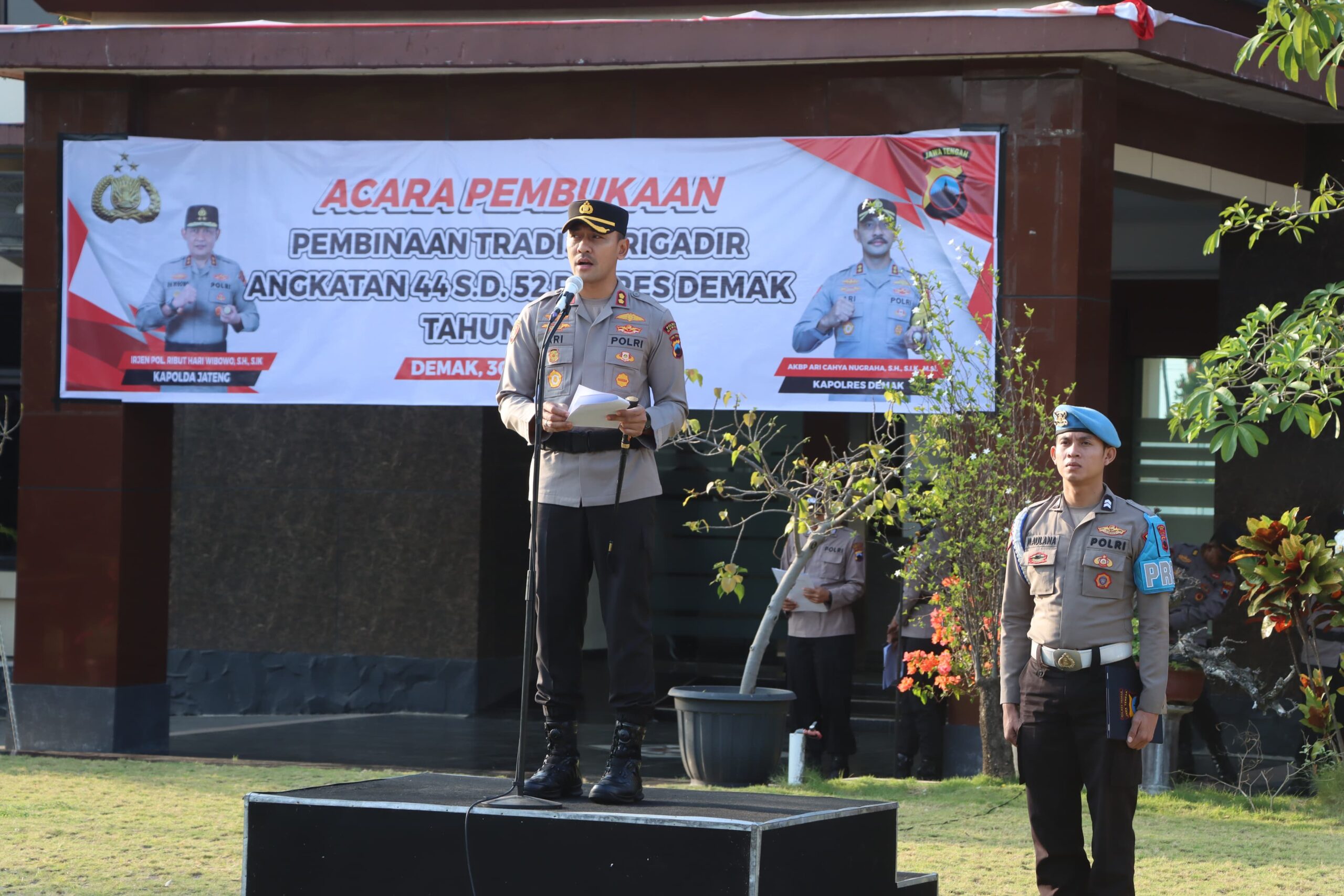 Demak, SUARABUANA.com – Sebanyak 108 Bintara Remaja dari Angkatan 44 hingga 52 yang bertugas di jajaran Polres Demak mengikuti Upacara Pembukaan Pembinaan Tradisi dan Pembaretan.