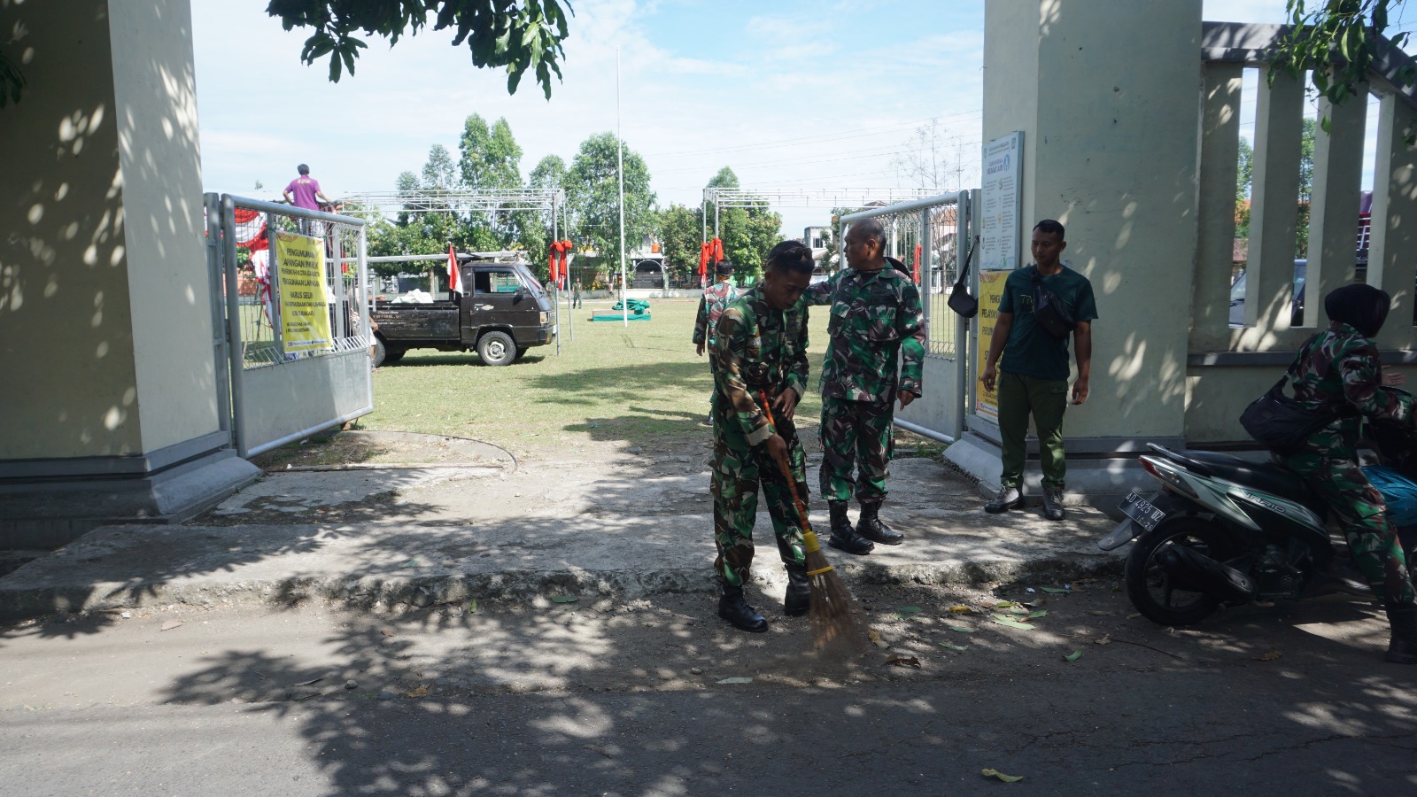 Anggota Satgas beserta jajaran serta para warga dan mitra Babinsa bersama-sama bergotong-royong membersihkan lapangan yang akan dijadikan tempat upacara penutupan TMMD Reguler ke-125 Kodim 0735/Surakarta.