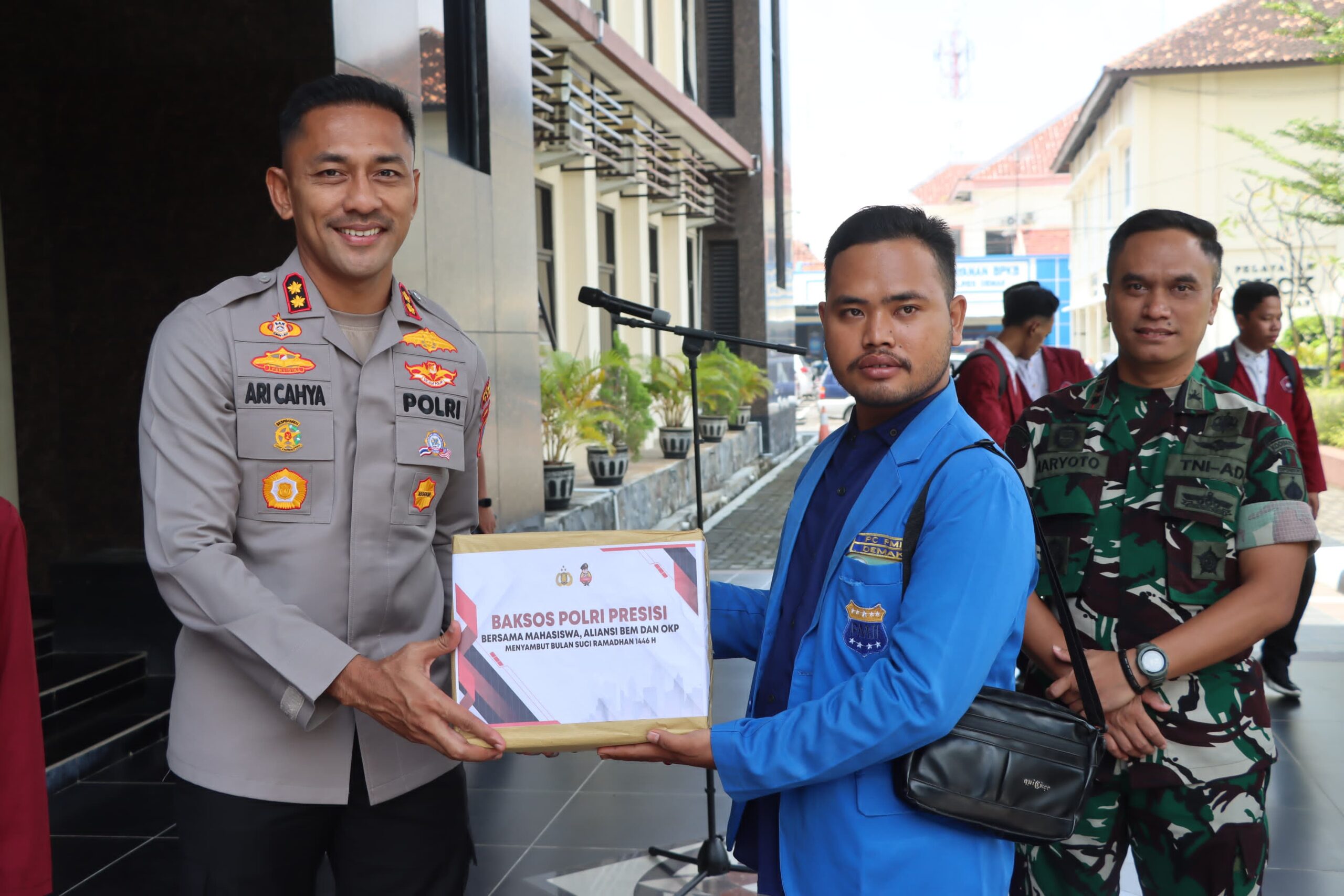 Kapolres Demak, AKBP Ari Cahya Nugraha, menyampaikan bahwa sebanyak 250 dus berisi sembako disalurkan kepada mahasiswa dan masyarakat yang membutuhkan.