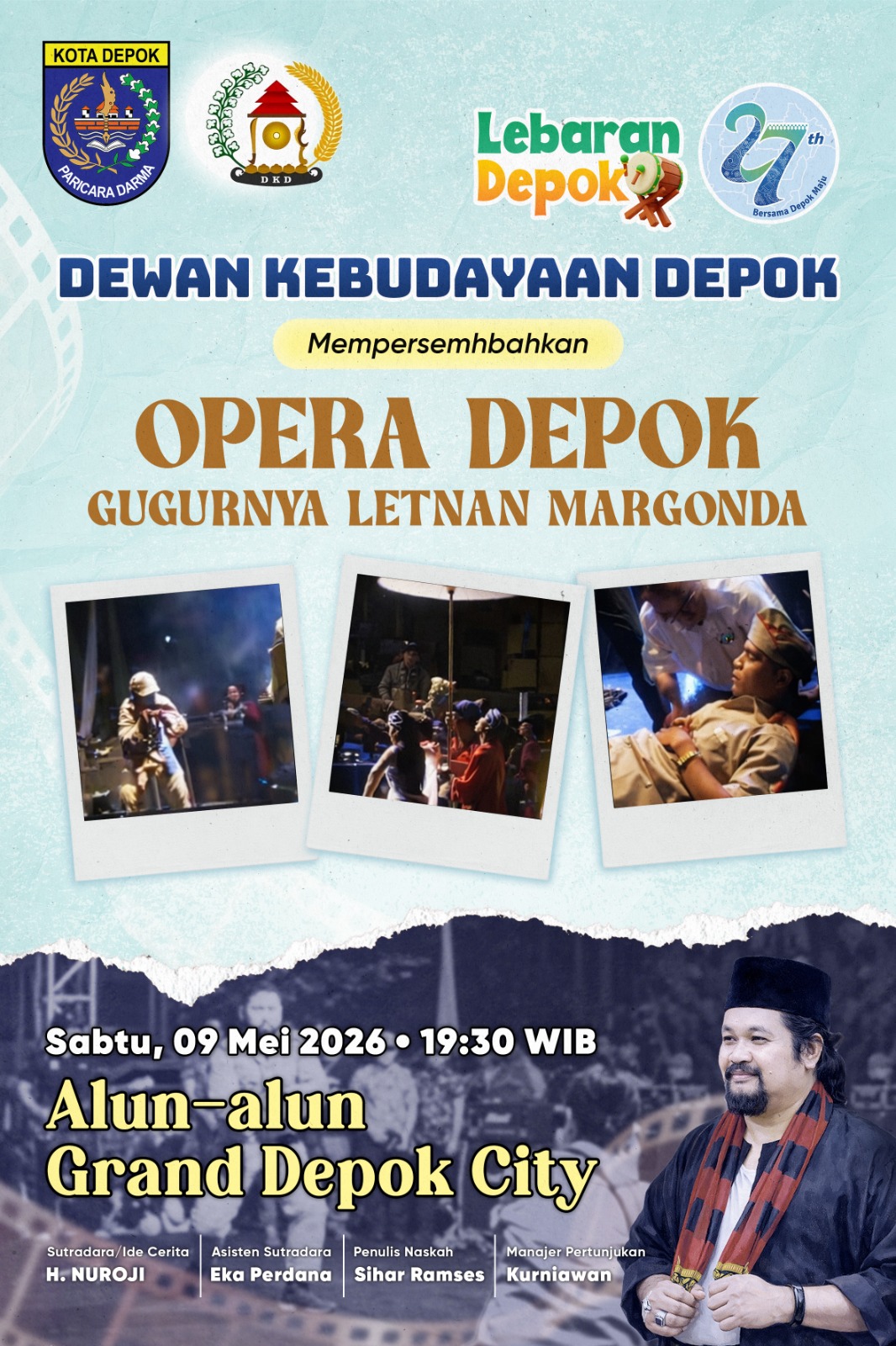 “Yaa, Kisah Margonda akan kita pentaskan di penutupan Lebaran Depok tanggal 9 Mei 2026,mulai pukul 19.30 Wib di Alun-alun GDC Depok”, Ujar Nuroji yang juga merupakan Anggota DPR RI dapil Depok-Bekasi dari Fraksi Gerindra ini.