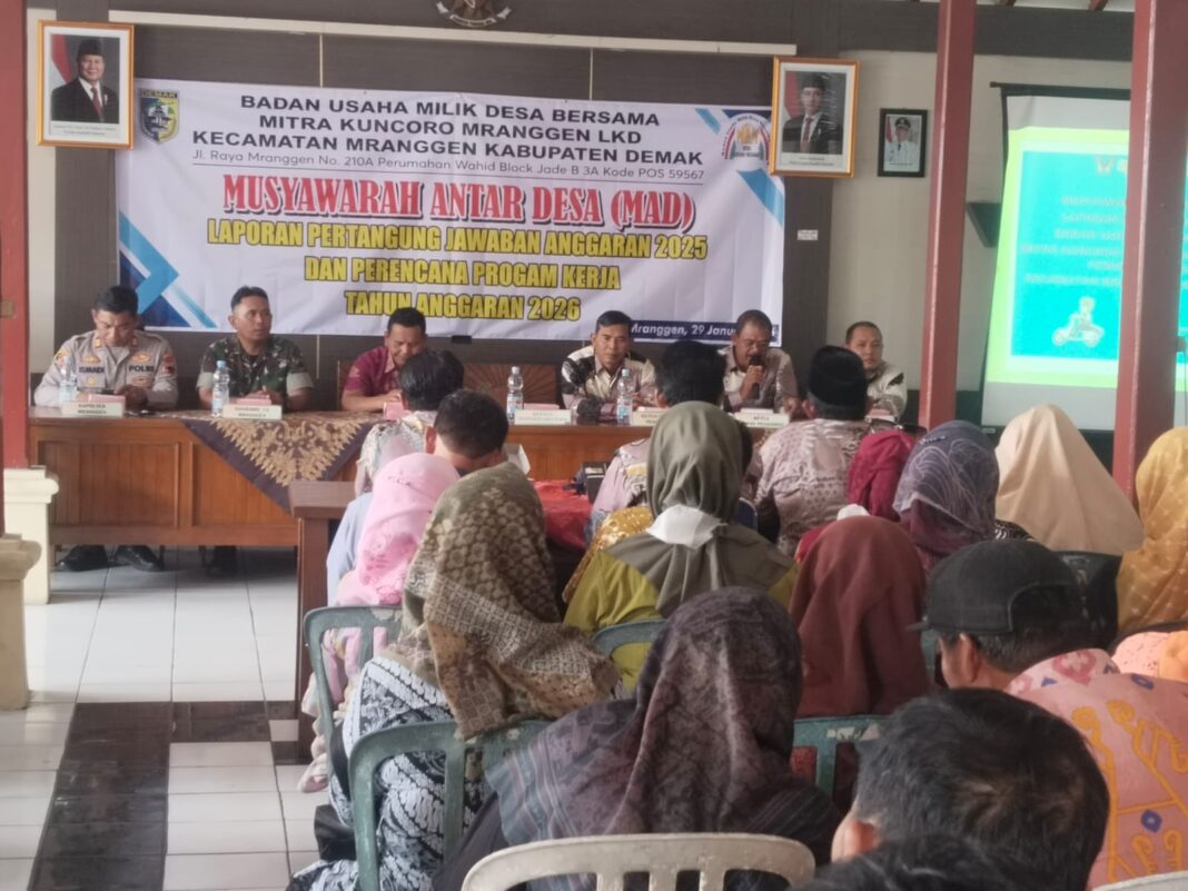 DEMAK, SUARABUANA.com – Dalam upaya mewujudkan tata kelola pemerintahan yang transparan dan berkelanjutan, Badan Kerjasama Antar Desa (BKAD) Kecamatan MRANGGEN sukses menyelenggarakan Musyawarah Antar Desa (MAD) Laporan Pertanggungjawaban (LPJ) Tahun Anggaran 2025 dan Perencanaan Tahun 2026.
