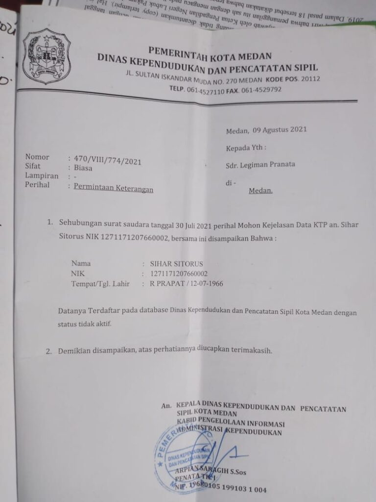 Untuk diketahui, kasus Legiman sebelumnya sudah dilaporkan dan sudah masuk proses penyelidikan di Ditreskrimsus Polda Sumatera Utara. Surat Pemberitahuan Perkembangan Hasil Penyelidikan (SP2HP) pun sudah diterbitkan. Namun nyatanya, hingga kini, tidak ada progres yang berarti.