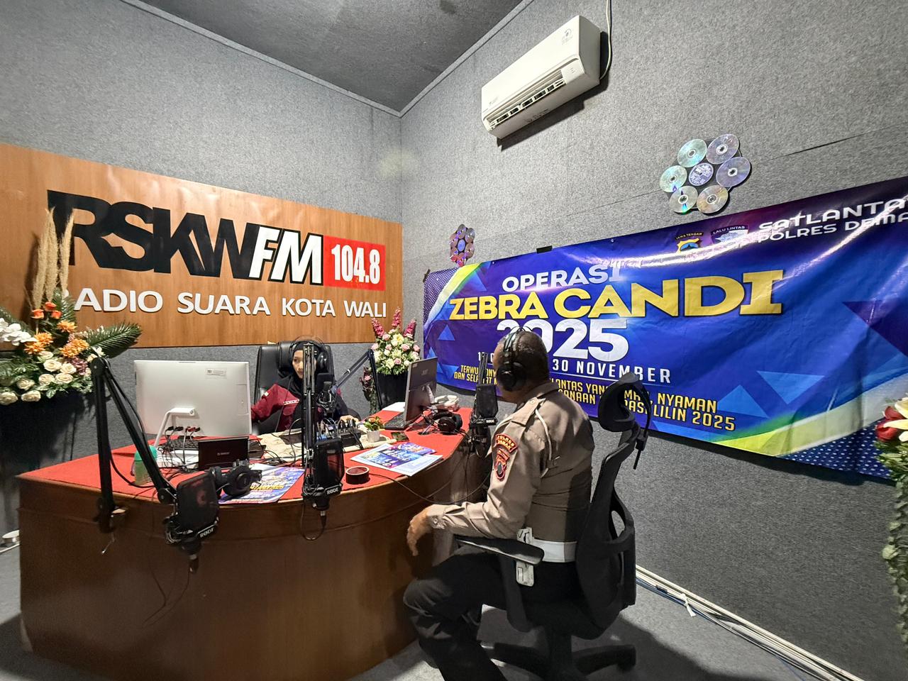 Demak, SUARABUANA.com – Satuan Lalu Lintas Polres Demak melaksanakan sosialisasi Operasi Zebra Candi 2025 melalui program talk show di Radio Suara Kota Wali 104.8 FM, Selasa (18/11) kemarin. Sosialisasi tersebut dipimpin Kanit Kamsel Satlantas Polres Demak, Iptu Rohmat Sukoprihanto, sebagai upaya mengedukasi masyarakat mengenai pentingnya tertib berlalu lintas selama pelaksanaan operasi.
