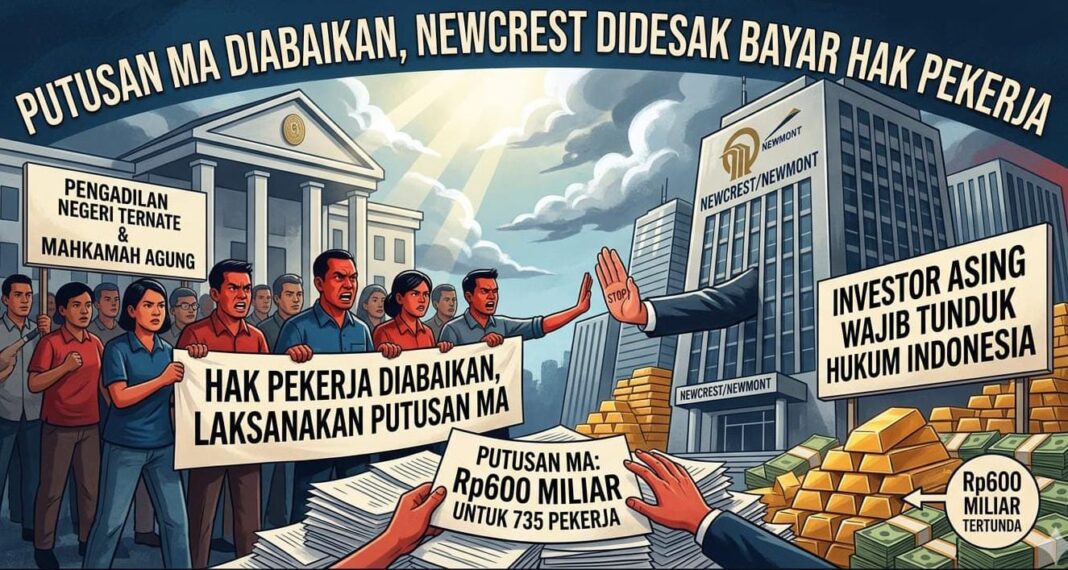 JAKARTA, SUARABUANA.com Tekanan publik terhadap korporasi tambang raksasa kembali menguat. Kali ini, sorotan tajam diarahkan kepada Newcrest Mining Limited yang kini berada di bawah kendali Newmont Corporation, terkait kewajiban pembayaran pesangon kepada 735 mantan pekerja PT Nusa Halmahera Minerals (NHM).