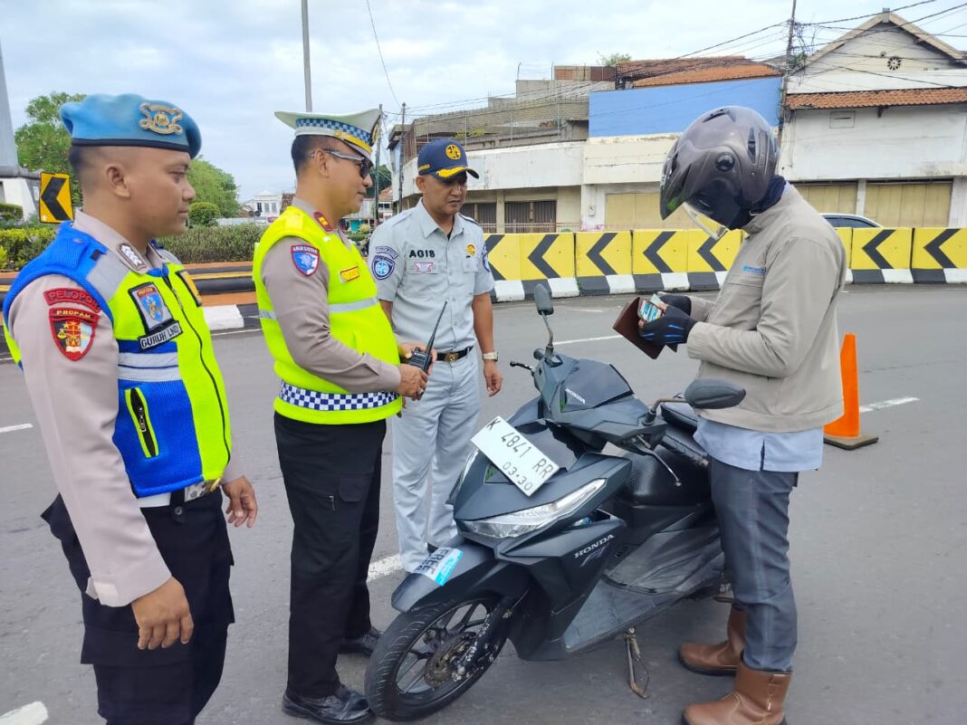 Demak, SUARABUANA.com – Satuan Lalu Lintas (Satlantas) Polres Demak bersama Unit Pelaksana Pendapatan Daerah (UPPD) Kabupaten Demak dan Jasa Raharja menggelar razia kendaraan bermotor di kawasan Alun-alun Demak, Selasa (3/2/2026). Kegiatan ini merupakan bagian dari pelaksanaan Operasi Keselamatan Candi 2026 yang digelar secara serentak di wilayah Jawa Tengah.