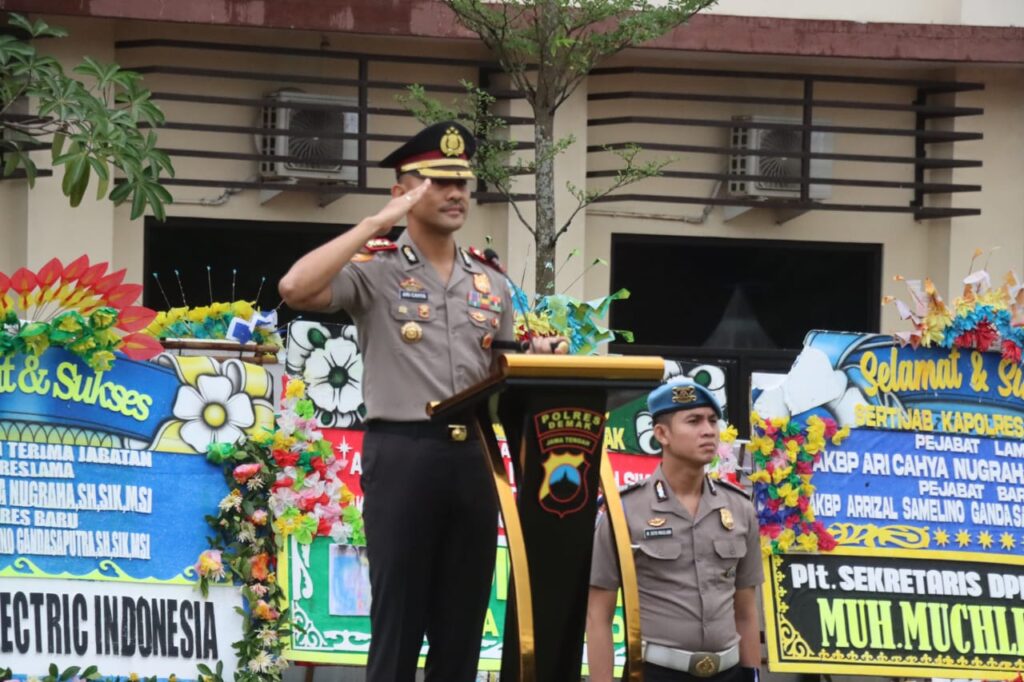 Demak, SUARABUANA.com – Kapolres Demak AKBP Ari Cahya Nugraha memimpin apel pagi terakhirnya sebelum melaksanakan serah terima jabatan (sertijab), Senin (12/1/2026). Apel yang berlangsung di Lapangan Wicaksana Laghawa tersebut diikuti oleh seluruh personel Polres Demak.Dalam amanatnya, AKBP Ari Cahya Nugraha menyampaikan apresiasi dan terima kasih kepada seluruh anggota Polres Demak atas dukungan dan dedikasi selama masa kepemimpinannya di Kabupaten Demak selama 1 tahun, 5 bulan, 15 hari.“Saya mengucapkan terima kasih kepada seluruh personel atas kebersamaan, kerja keras, dan loyalitas yang telah diberikan. Komunikasi dan soliditas yang terjaga menjadi kunci kelancaran pelaksanaan tugas,” ujar AKBP Ari.AKBP Ari juga menyampaikan permohonan maaf apabila selama memimpin terdapat kekhilafan maupun kekurangan. Ia berpesan kepada seluruh personel agar senantiasa menjaga kesehatan, profesionalisme, serta loyalitas terhadap institusi dan pimpinan.
