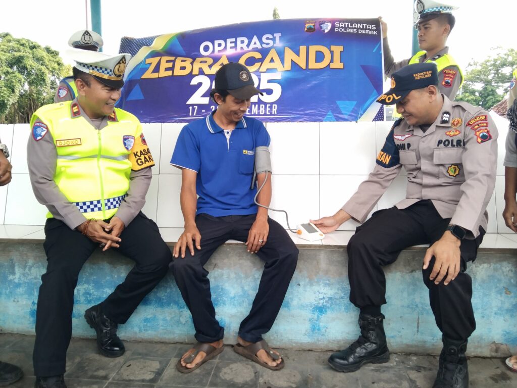 Kegiatan yang dipimpin Kepala Urusan Pembinaan dan Operasional (KBO) Satlantas Polres Demak, Iptu Djoko Prayitno, itu juga dirangkai dengan layanan pemeriksaan kesehatan gratis bagi masyarakat dan para pengemudi. Langkah terpadu ini dilakukan untuk mendukung pelaksanaan Operasi Zebra Candi 2025, yang tahun ini menitikberatkan pada penegakan hukum berbasis Electronic Traffic Law Enforcement (ETLE) serta strategi preemtif, preventif, humanis, dan responsif.