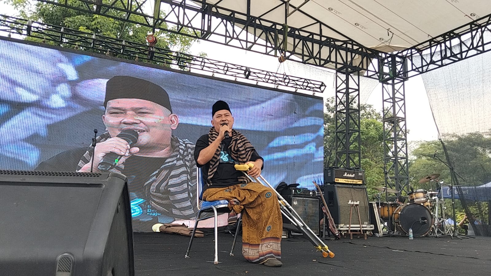 Pria penyandang disabilitas(kaki hanya satu) ini tampil memukau dengan menyanyikan sebuah lagu berjudul Habis Gelap Terbitlah terang.