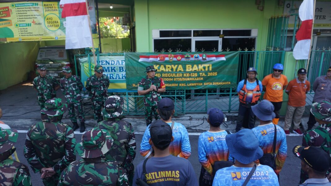 Surakarta, SUARABUANA.com – Bertempat di Sungai depan Pasar Kleco Jl. Slamet Riyadi Kelurahan Pajang, Kecamatan Laweyan, Satgas TMMD Reguler ke-125 Kodim 0735/Surakarta dipimpin langsung oleh Dansatgas Letkol Inf Fictor J. Situmorang S.I.P., M.I.P bersama dengan Pemerintah Kota Surakarta, Kepolisian, Linmas, DLH, BBWS serta Relawan melaksanakan kegiatan karya bakti pembersihan Sungai Kleco dalam rangka HUT RI Ke-80 Tahun 2025, Sabtu (16/08/2025).