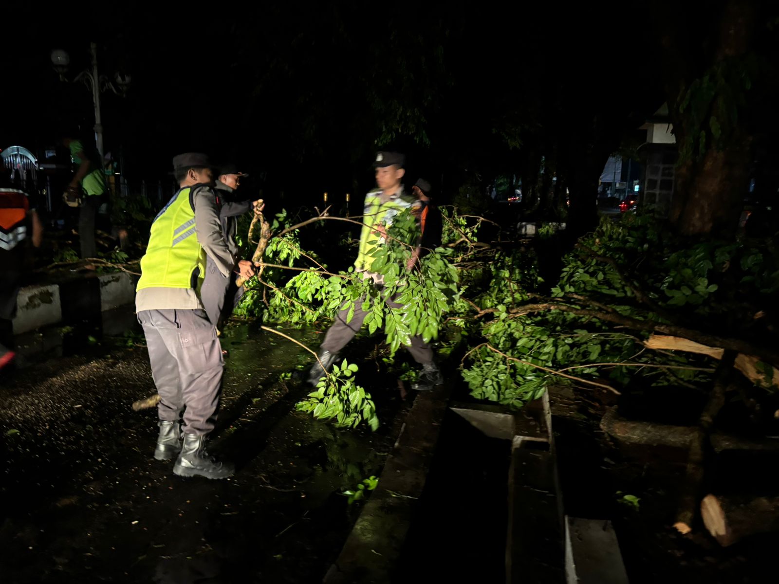 Demak, SUARABUANA.com – Kepolisian Resor (Polres) Demak, Jawa Tengah, bersama instansi terkait bergerak cepat menanggapi musibah pohon tumbang yang terjadi di beberapa titik usai wilayah Demak diterjang hujan deras disertai angin kencang pada Senin (29/9) sore.