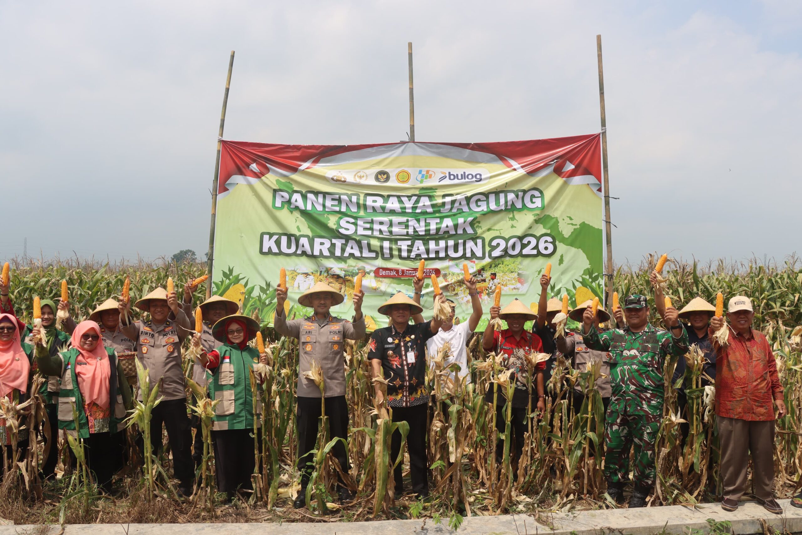 Demak, SUARABUANA.com – Polres Demak melaksanakan kegiatan Panen Raya Jagung Serentak Kuartal I Tahun 2026 sebagai bentuk dukungan terhadap Program Swasembada Pangan Nasional. Kegiatan tersebut dipimpin langsung oleh Kapolres Demak AKBP Ari Cahya Nugraha di Desa Sumberejo, Kecamatan Mranggen, Kamis (8/1/2026).