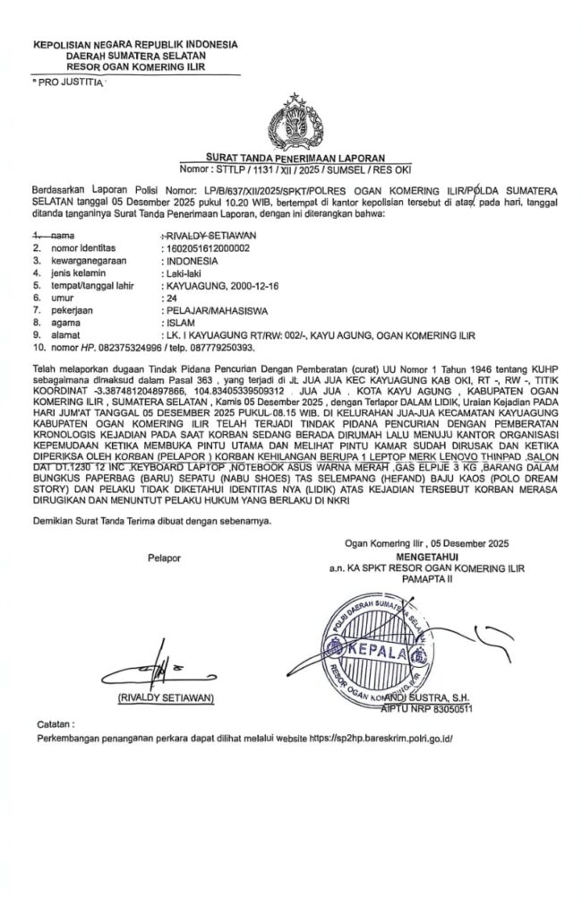 LP/B/637/XII/2025/SPKT/POLRES OKI