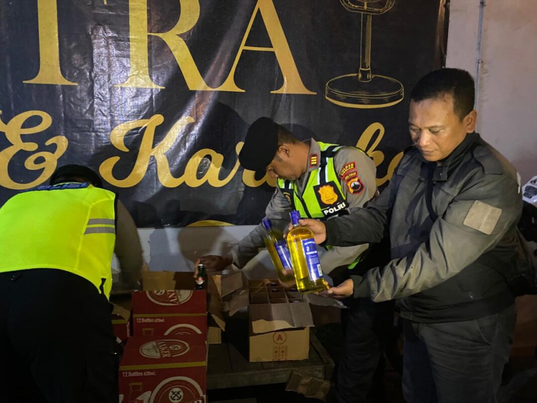 “Dalam operasi kali ini, kami mengamankan sebanyak 157 botol minuman keras berbagai merek dari sebuah tempat karaoke yang masih beroperasi pada bulan suci Ramadhan,” ujar AKP Setiyo.