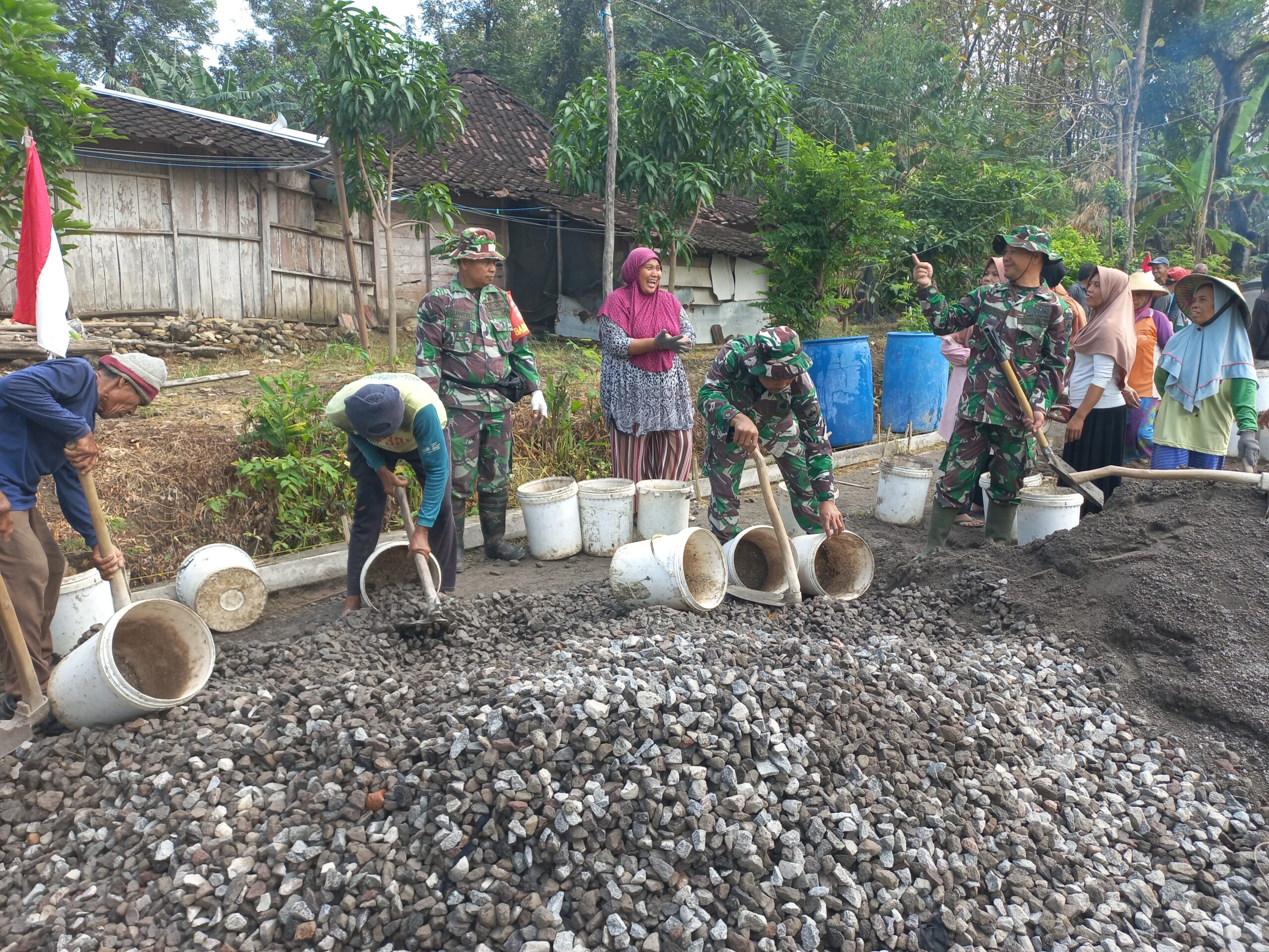 Danramil 18/Kemusu, Lettu Inf Heri Santoso, menegaskan bahwa semangat kebersamaan dan gotong royong menjadi kunci percepatan pekerjaan.