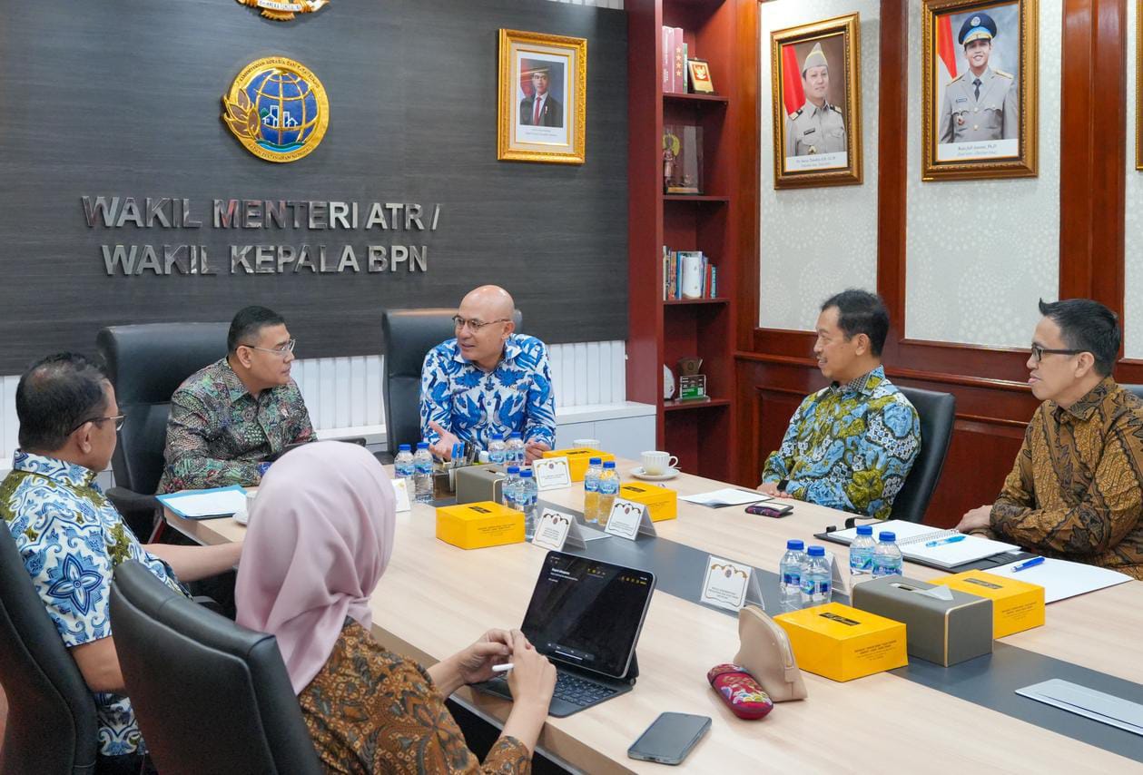 Wakil Menteri Agraria dan Tata Ruang/Wakil Kepala Badan Pertanahan Nasional (Wamen ATR/Wakil Kepala BPN), Ossy Dermawan, menerima kunjungan Wakil Menteri Luar Negeri (Wamenlu), Arrmanatha Christiawan Nasir, beserta jajaran di Kementerian ATR/BPN, Jakarta, Jumat (9/01/2026).