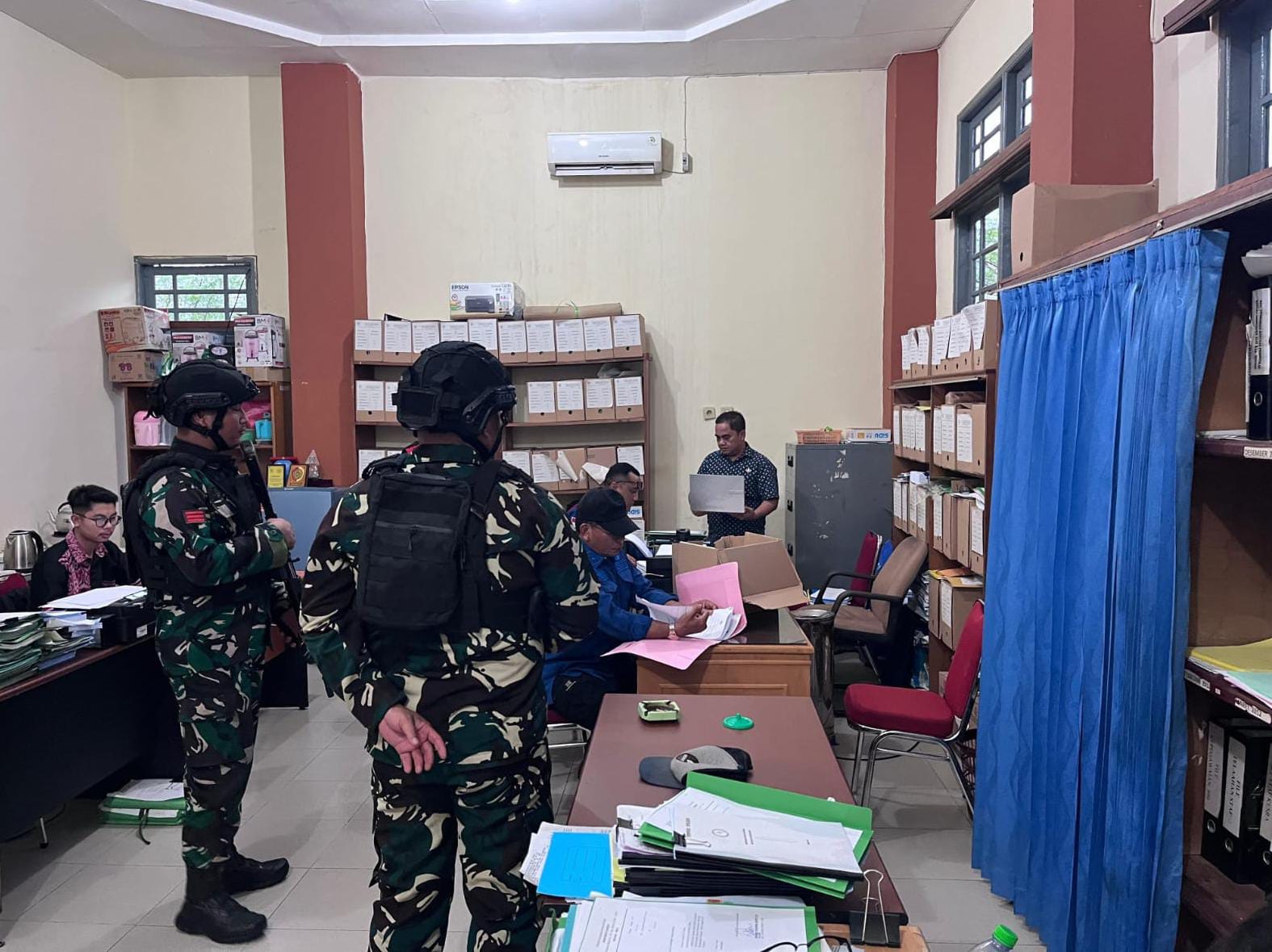 – Dikantor Sekretariat Kabupaten Sintang Bagian Kesra, penyidik mengamankan sejumlah dokumen berupa Surat Keputusan Bupati, tentang Dana Hibah, Peraturan Bupati, Pencairan Dana Hibah, dan Laporan Pelaksanaan Kegiatan GKE Petra Sintang Tahun 2018.